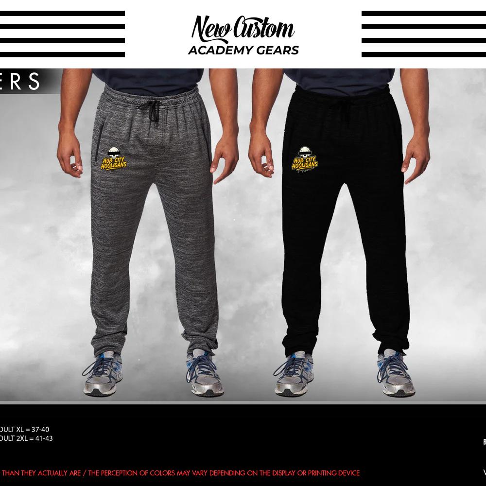 Joggers with front zip pocket and back pocket. 3 logos, 3 colors